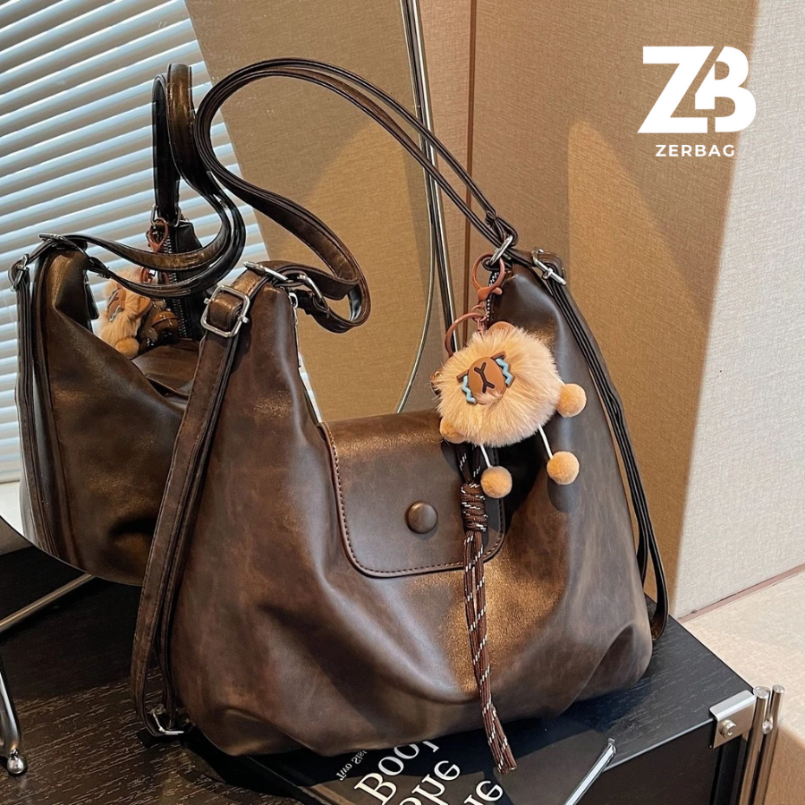 Túi xách nữ ZERBAG đeo chéo phong cách Hàn Quốc kèm charm gấu siêu xinh